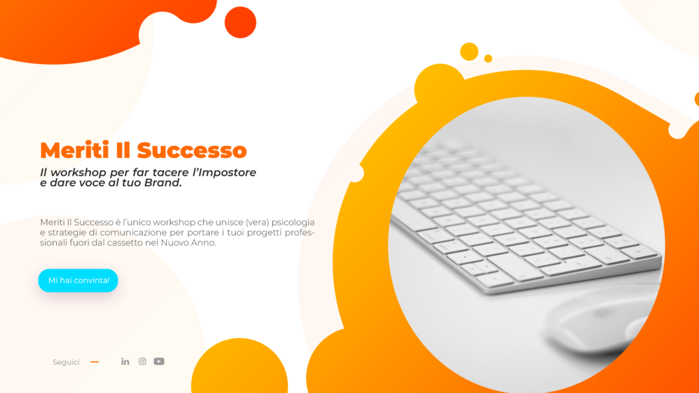 Meriti Il Successo è l’unico workshop che unisce (vera) psicologia e strategie di comunicazione per portare i tuoi progetti professionali fuori dal cassetto nel 2022.